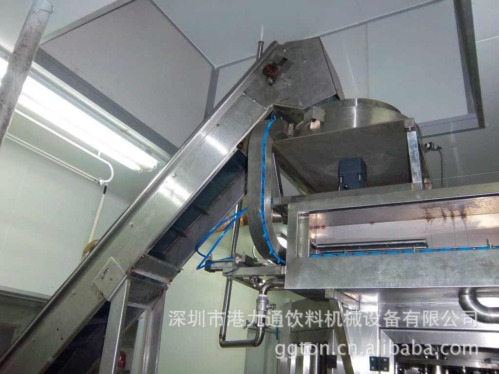 蓋提升機:蓋提升機采用管道或鏈條將蓋由低處提升到蓋清洗機的容蓋器內(nèi),減少人工的勞動強度,同時使灌裝間保持了較高的潔凈度,提高了產(chǎn)品的質(zhì)量。蓋提升殺菌清洗機采用PLC控制,可單機獨立運行,也可連線布置,整機簡潔明快,整機可靠性高。故障率極低。蓋提升機的運用真正意義上實現(xiàn)了全自動化作業(yè)及無人車間的實現(xiàn)。廣東省深圳市港九通飲料機械設備有限公司,是一家專業(yè)研發(fā)生產(chǎn)銷售各種純凈水,山泉水,礦泉水,飲用水灌裝