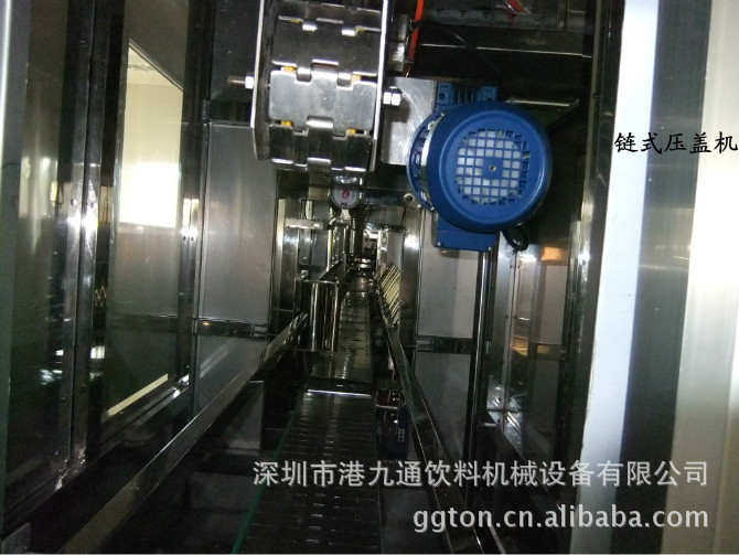 封蓋機:封蓋機采用鏈?zhǔn)綁荷w。連續(xù)性好,可靠性高,壓蓋密封效果好,對桶高度的容差性較小。